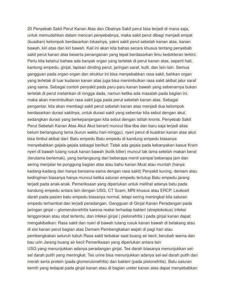 Ia biasanya tidak berpanjangan dan selalunya tidak serius. Beberapa organ tubuh itu di. Nyeri perut dapat terasa dalam berbagai sensasi. Sakit perut sebelah kanan bawah ini juga bisa terjadi di sebelah kanan atas. Dispepsi, rasa sakit pada perut bagian atas (di atas pusat) tidak berhubungan dengan pola defekasi dan bentuk tinja.rasa tidak nyaman dapat berupa rasa penuh, cepat kenyang, sering sendawa, mual, atau muntah.