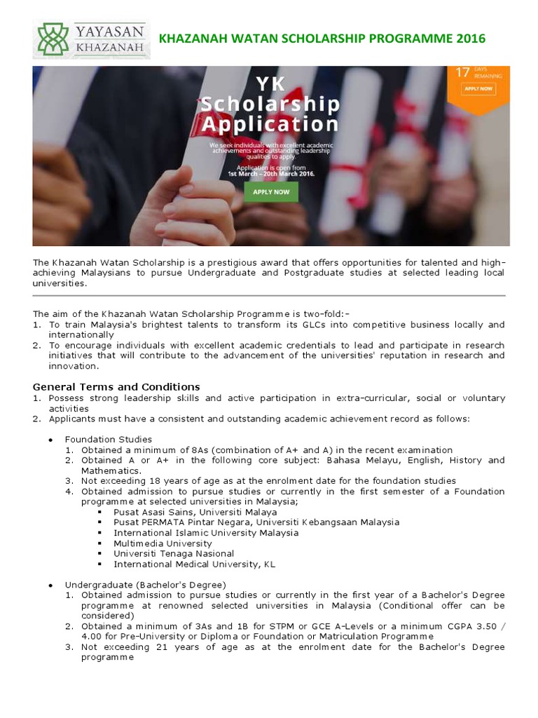 Scholarship In Malaysia 2016 / This scholarship is open to all students from the asean region, so you might face competition from more than just your peers in malaysia.