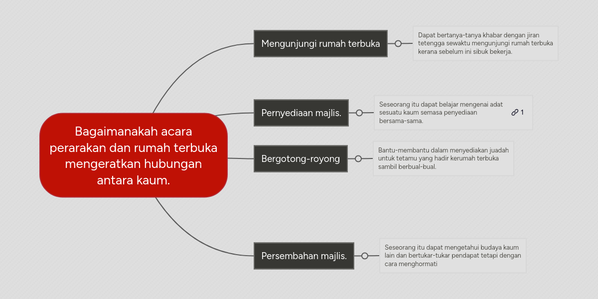 Tegasnya, majlis rumah terbuka mampu mendekatkan ahli masyarakat untuk bertemu muka dan berkenalan dengan lebih erat lagi. Jika kita nilai kegiatan ekspor dan impor sekarang ini justru memiliki peranan penting dalam perekonomian antar negara yang salah satu penyebabnya mungkin karena perbedaan sumber daya dan perbedaan kepentingan antar negara yang satu dengan negara yang lainnya. Tamsilnya, penganjuran rumah terbuka pada hari perayaan menjadi medan perpaduan antara. Hal ini menunjukkan bahawa semangat kejiranan yang dipupuk dapat membentuk kerjasama dalam kalangan anggota masyarakat seterusnya membentuk ukhuwah yang kukuh dan ampuh. Tempias daripada amalan rumah terbuka ini menyebabkan suburnya hubungan silaturahim dalam masyarakat.